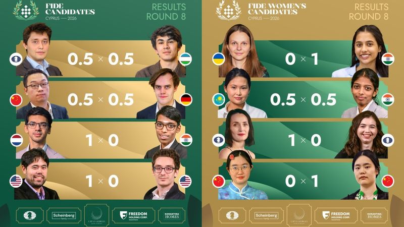 So far it's all falling into place for him. GM Hikaru Nakamura, disappointing in the event until now, did Sindarov a huge favour by taking down closest rival GM Fabiano Caruana. In doing so, Nakamura kept his world number-two spot.